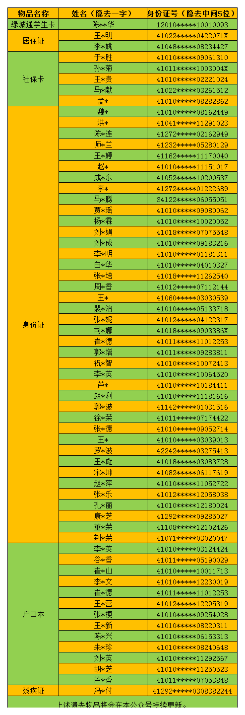 下表就是本期收納的遺失物品明細清單,希望遺失下列物品的市民朋友能夠通過(guò)這則溫馨提示及時(shí)找回,減少補辦過(guò)程中帶來(lái)的麻煩。