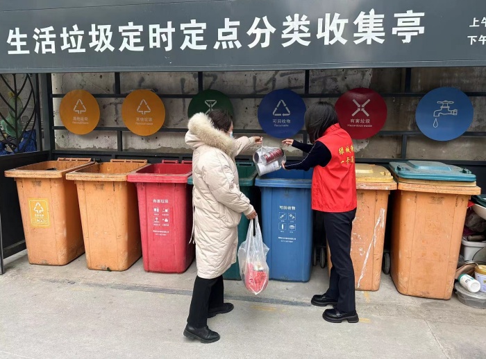 活動(dòng)中,黨員志愿服務(wù)隊的志愿者們值守在垃圾桶旁,向周邊居民介紹生活垃圾分類(lèi)知識,詳細講解垃圾分類(lèi)的重要意義、垃圾分類(lèi)的具體方法、投放方式和回收利用途徑,耐心地為居民們解答垃圾分類(lèi)中的疑問(wèn),倡導大家在日常生活中做好源頭減量、分類(lèi)投放,爭做垃圾分類(lèi)的宣傳者、踐行者,培養良好的垃圾分類(lèi)習慣。