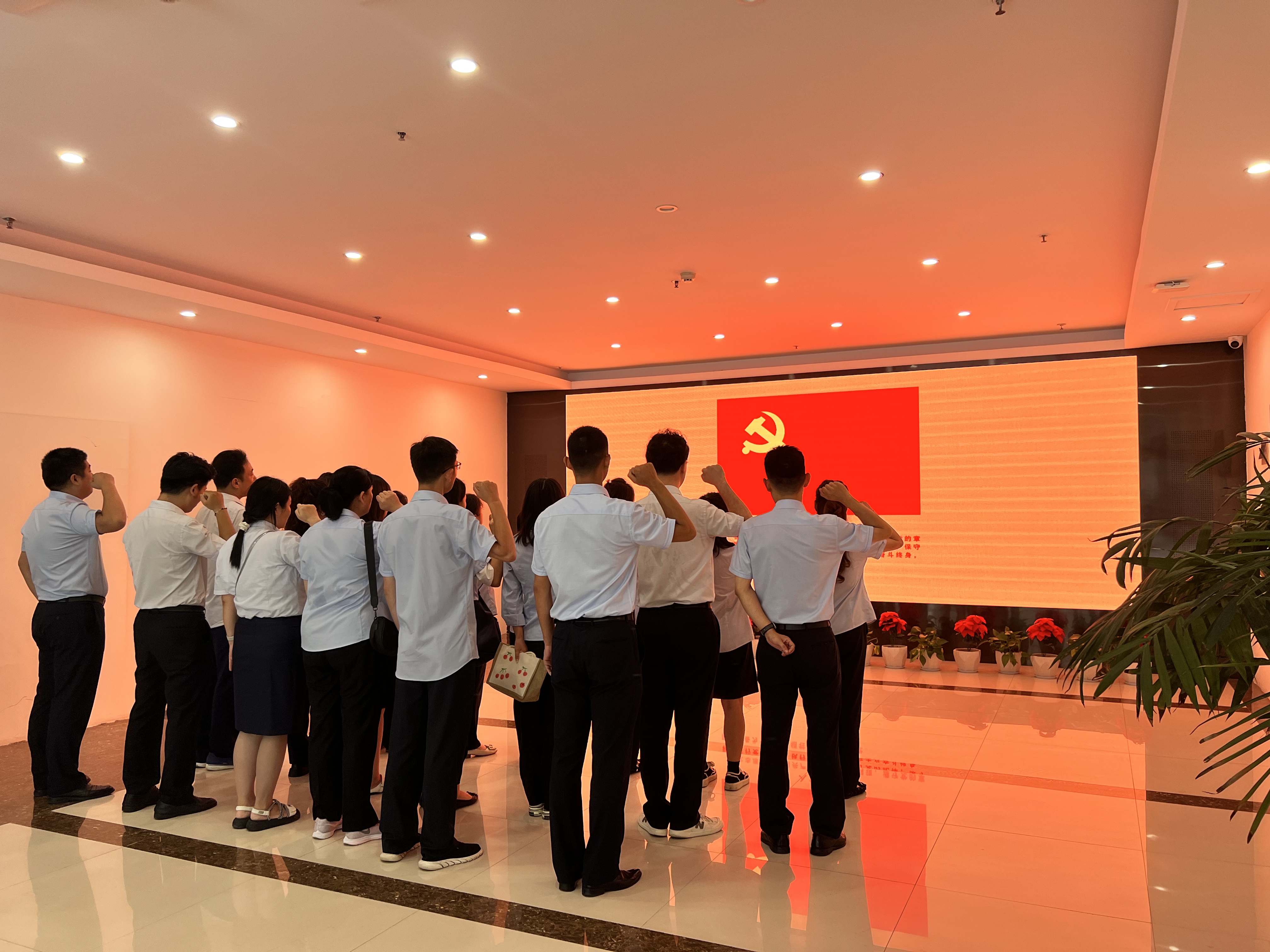 活動(dòng)伊始,由運營(yíng)黨支部書(shū)記周海領(lǐng)誓,全體黨員在黨旗前重溫入黨誓詞,重憶入黨初心。